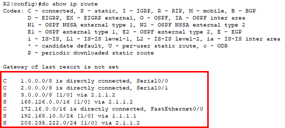 ip route 3.0.0.0 255.0.0.0 2.1.1.2
