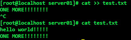 연산자 >와 >> 두개를 사용하며 >는 기록, >>은 추가 라고 생각하면 된다.