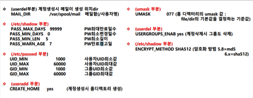 - 패스워드 정책과 리눅스 시스템 사용자의 전체를 제한하기 위해 사용하는 파일이다.