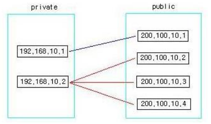 - 특정 사설IP가 특정 공인IP만 사용하도록 관리자가 미리 정해놓는 방식