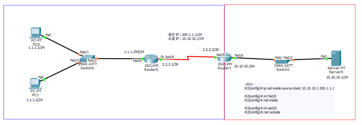 - 설정 Router(config)# ip nat inside source static [local-ip] [global-ip]