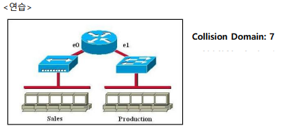 LAN에서 전송매체를 공유하고 있는 단말 사이의 경쟁이 생겼을 경우 이를 Collision(충돌) 이라고 한다. 허브 밑에 10대의 컴퓨터가 있을경우 충돌로 인해 1/10 로 속도저하가 일어나게 되는데 이를 막기위해 layer2계층 이상의 장비들, 보통 스위치가 해결을 한다. 충돌영역을 포트당 하나로 영역을 잘개 쪼개 충돌이 일어나지 않게 한다.