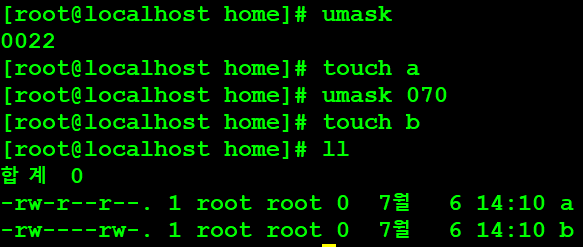 - 예를들어 dir의 권한이 755면 dir의 umask는 022일 것이다.