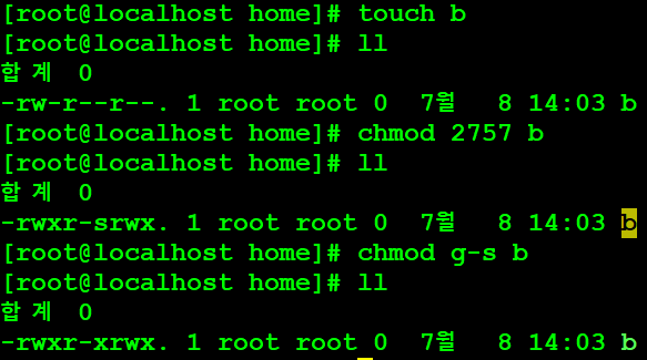 - chmod g±s 혹은 chmod 2천번대로 적용 가능하다.