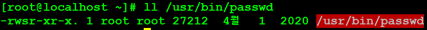 - 하지만 일반사용자는 /etc/shadow 파일에 아무런 권한이 없다. 이럴 경우 명령어가 실행되는 동안만은 소유주의 권한을 갖도록 해주는 것이 setuid 설정이다.