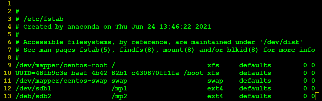 /dev/sb1 /mp1 /ext4 defaults 0 0