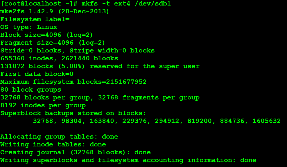 여기서 -t ext4 는 파일시스템의 형식을 리눅스의 파일시스템인 ext4로 해준다는 뜻