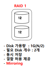 - 동일한 데이터가 두 개 이상의 디스크에 동시에 저장되어, 하나의 하드가 다운되어도 데이터를 온전히 복구할 수 있다.